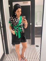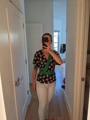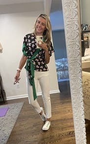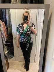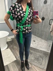 This is an adorable wrap top, and I got a lot of compliments. If between sizes, I recommend sizing down. Also, as with most wrap tops, you might need to pin the center. But it was comfortable for all-day wear, including travel.