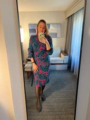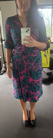 DVF rarely misses and this dress is flattering, fun, colorful, professional and overall perfect. The high quality, thick material and print made the dress forgiving. Would rent again and purchase!