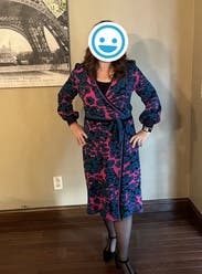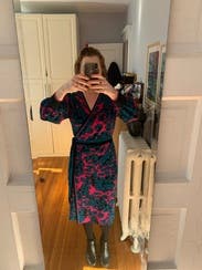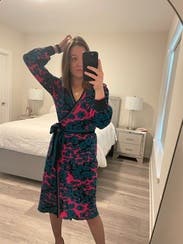I loved the fun print, weight of the fabric, and weight cinching wrap tie! Highly recommend!