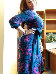 Fun colors, nice weight. A true wrap dress and a delight to wear.