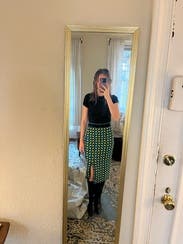 So many ppl complimented me on this skirt. I paired it with a body suit and it worked great and was insanely comfy and super flattering. I have bigger thighs and was worried this would accentuate it but I feel like it did the opposite.