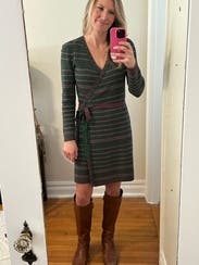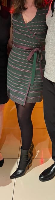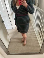 A DVF wrap dress always looks great on my figure. This one was weighty and warm. The colors are muted but it was still a fun outfit for work.