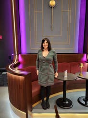 Warm, flattering and colors worked for the holidays but not too much of a "Christmas" dress