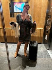 I wore this to a conference over jeans for a casual look. I liked how it looked with a turtleneck under and would rent again in the fall.