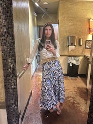 This skirt is LOVELY. It was a little tight around the waist - I could’ve sized up for sure. But it stayed in place which I really liked, so I didn’t mind it was tight.