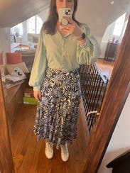 Wore this skirt for a day of wine tastings in Napa, and it was perfect. Would say very true to size, and the fabric was light and flowy. Loved it!