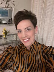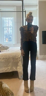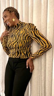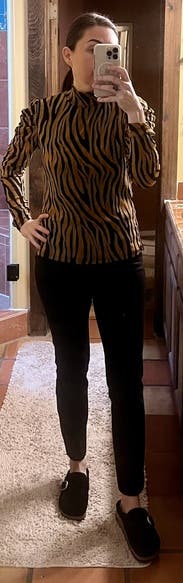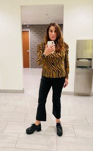 This top got so many compliments. It’s great at the office because it’s comfortable and not overly powerful in pattern. It also helped that it’s my company colors as well. I’d definitely wear again.