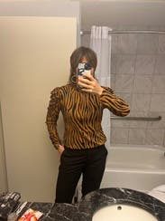 I liked this too more than I thought I would. I thought the high neck would be uncomfortable but I didn’t even notice it. I bought this to match with the same print skirt - but together they looked awkward.