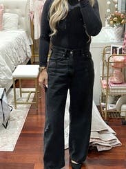 DL1961's Black Taylor Relaxed Barrel combine an ultra-high rise with a relaxed barrel leg. Pair with a fitted top and loafers for a balanced, contemporary look.