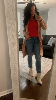 I am shorter so it’s always a challenge to find jeans that fit my waist but aren’t too long. These are perfect! Love the high waist, fringe at ankles, and the color. 10/10!!
