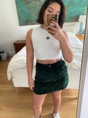 This skirt was amazing. I loved the deep green color and the fabric was so soft. It had just the right amount of stretch where when I wore it to a honky tonk bar, I was able to sufficiently get my groove on without worrying that it would ride up. It's pretty high waisted, which makes it super flattering to pair with a very cropped shirt. Loved it!!