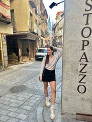 Noticed everywhere I went in this skirt. It short but not too short. Love the material and the color