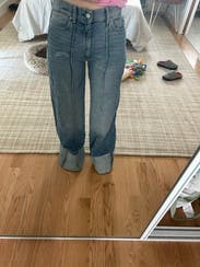 Cool jeans but a little tough to style? Probably better for summer. But a really tight long sleeve tucked in is cute too. But yeah these are too long, and I’m tall. They were also a little big on me so I’d say if you’re in between sizes, size down.