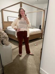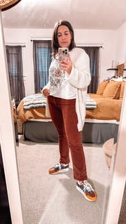 Then color is great and neutral so you can wear with many colors. The fit is a lil low waist. The fit is TTS. I really loved this pair of corduroys.
