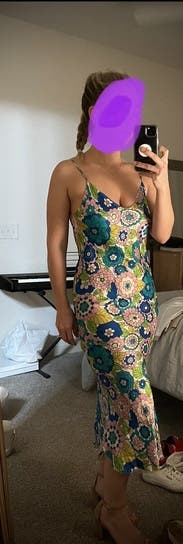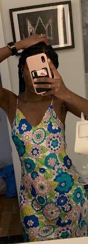 Love this dress so much! The print in colors were the most fun. I am normally about a size 6 so 42 here was a little bit big for me, but it was available at the time!! the straps were a little bit long but nothing too bad.