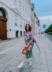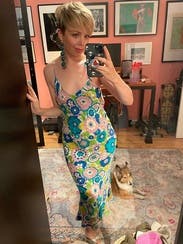 It’s giving vintage Gucci vibes. The colors are so pretty and the material is like a light weight silky but so flattering! Wore this to a nice dinner on vacation 25 weeks pregnant! I wish this could be in my closet permanently I’m so sad to send it back