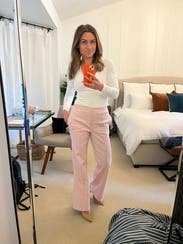 These pants were a ton of fun. I wore them to work and thought they fit great. I’m pretty tall so the length was perfect in me. I also got a few compliments on them, and felt they were very flattering. I’d definitely rent again!