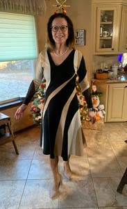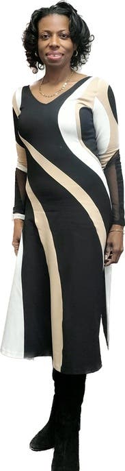 This dress showed all the curves (in a good way)! Pattern was unique and the material is amazing. My only complaint is the sleeves. Very snug and that is not usually an area of concern for me. I would try sizing up for comfort. I think the fit would still be nice overall