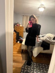 Wore to a formal work party and really liked how I felt in it! It was comfy and cute while still being work appropriate. It’s a little plain so can be dressed up with shoes/accessories!