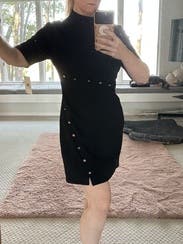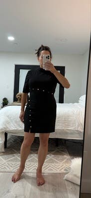 I felt so hot wearing this dress! The buttons and cut make it feel retro. The fabric is thick and the cut hugs your curbs in the most flattering way. The lil cut on the leg is sexy but not so much so that you can’t wear it to work. Highly recommend!