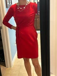 Cute dress, length is work-appropriate, beautiful red color, but a bit loose around the waist.