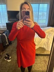 I wore this dress for Go Red for Women, paired with black heels and black tights. I’m 3.5 months pp so wasn’t quite sure my size these days and still a bit of a tummy, and this dress was perfect. Had a good stretch to it. Only downside was lack of pockets.