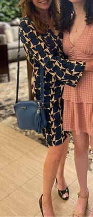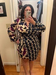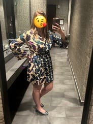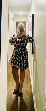 This was just an okay rental for me. It was a little too short for me but I wore it with thicker black tights and it worked out. Also the wrap was “open” a little too much so I kept a cami underneath because the wrap opened a little low on the chest.