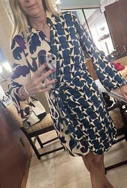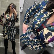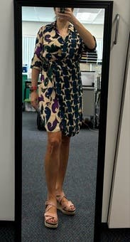 Unique print; professional and photographed well. Not super flattering, but wearable.