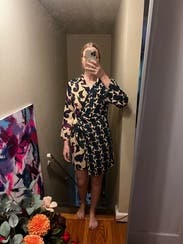 It was a great multi-pattern dress. Good length on me at 5'4. Typical wrap dress needed a tank underneath and splits when you are sitting. Great dress and photgraphs well