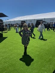 Even at 5’2 the dress hit above knee which was great. Only tricky part is the button at waist w/ elastic tie awkward to do on self (that fit a tad tight). Rest of dress plenty of room and the sleeves also so fun lije the print! I was surprised this wasn’t a $300-400 dress. Compliments for sure!!! I pinned the dress to the tie on a windy day….