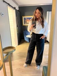 Loved this lightweight, but not sheer, button up top. The fabric was a little wrinkly and it benefitted from an iron/steam. Easy to wear and goes with everything. slightly oversized, which I prefer.