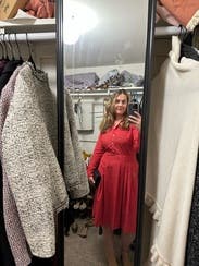 Fun dress, rented to be festive at work for Valentine's Day. I can never seem to figure out the sizing on Draper James, usually their clothes are a little big but this dress ran small especially in the bust. I had to pin it close and when I moved my arms open it really looked strange across the chest. 100% polyester that has 0 stretch, also gets tons of static, even with a slip the dress kept sticking to my legs. Looked cute but not a great fit for me