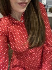 Who doesn't love polka dots? The red is a fun twist. And even though this is buttoned up (literally) it's still so classy and classic for work. I will be keeping an eye on this one because I wouldn't mind having it permanently in my closet.