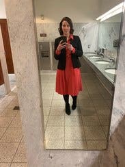 So many co-workers and friends complimented this dress, but it's just not my personal style. I tend to like things more fitted, but I use Rent the Runway to try to new styles. The dropped waist and 30s-era polka dots just didn't resonate with me, but I can appreciate that I looked like an adorable Minnie Mouse. It was a completely appropriate dress for work. A little baggy through the chest as I'm solidly a 22-24 in the waist and hips which can sometimes leave me a bit saggy in the chest and arms on certain cuts.