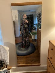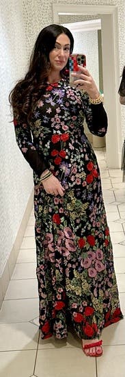 I ordered a bunch of embroidered floral dresses to try on for a fall wedding on my membership plan. This dress was my favorite but I probably won’t wear it. The long sleeves make it quite warm, and it does look a little matronly compared to other sleeker, sleeveless dresses. But I am holding onto it just in case it’s cold, because I really do love the look of it. It’s stunning.