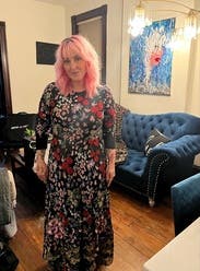This dress is gorgeous and one of my all-time favorite rentals. Lots of compliments—but especially intense compliments along the vein of “where did you get that dress because I need it.” Wore as pianist for my perfect grandmother’s funeral, then again for a formal community event. I’m normally a 4, maybe a borderline 6 after some recent weight gain after my grandma's death, so I thought I'd be safe with the 4-6 size, but definitely needed the 8-10 for comfort in the arms and shoulders. Thanks to RTR wonderful customer support for a last-minute size exchange.