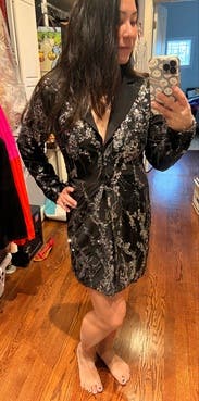 This was perfect for Vegas!! I wore it as a blazer instead of a dress because it was too tight to close the buttons but I made it work! I safety pinned the bottom portion inside the dress that is supposed to wrap around like a skirt. I would rent again in a larger size!