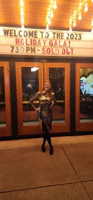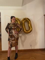 I wore this to a Christmas pop up bar for my birthday! Very reflective, I felt like a disco ball. The dress is super stretchy!