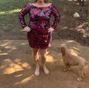 I wanted to wear something splashy for my 40th, and this fit the bill! The dress is great quality, and a thick, stretchy fabric (in fact, it's hot in more ways than one 😄). You may need some help getting zipped into it! Though this fit, I think I might have been a bit happier and more comfortable with a size up-- if nothing else, I wouldn't have minded another inch in length.
