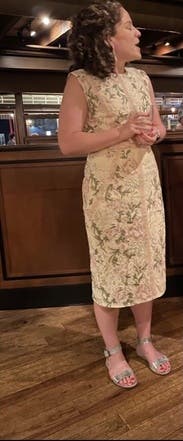 It was a nice formal dress for the occasion. I'm a wedding planner so I always need nice dresses when I'm on site at weddings and I thought the dress was appropriate for the wedding. It was a little bit grandma-y but worked for the occasion.