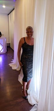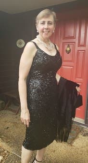 I loved the form fit and ease of wearing this dress. It had just enough sparkle! I felt so sexy and amazing wearing it. My husband could hardly keep his eyes off. With the simple black wrap I already had, and a lovely short pearl choker my outfit was lovely.