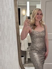 If you want to sparkle at your next event, run don’t walk to rent this dress! Super comfortable with just the right amount of stretch!! Highly recommend 💫