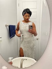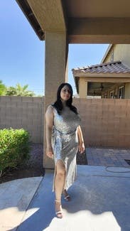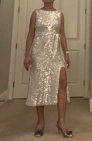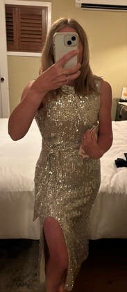 Like others have said, despite being sequined this dress is extremely comfortable. I’m 5’9” so the slit was a little high on me but not bad enough not to wear it. It really looks so much nicer in person than in photos. The size 2 was a little snug and the size 4 was a tiny bit large but I ended up wearing the 4 with no regrets.