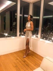The back was slightly too low for a normal bra and the slit was a bit higher than I expected, and as with most sequin dresses, it was a little scratchy on my underarms but nothing too bad.