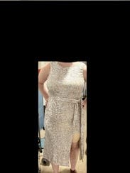 This dress was so much fun to wear, the sparkles and sequins were perfect for a New Years Eve event!! The dress was true to size, I am 5'5" and 190 lbs, I normally wear a 14-16 and I rented an XL. The sequins under the arms were a bit scratchy and uncomfortable, otherwise it was perfect!!