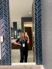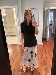 This is good for work or with a pair of jeans it’s linen which I didn’t realize but would def rent again. Super cute