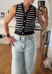 Nice vest that gave off nautical/preppy aesthetic for the summer. Definitely can look frumpy if not styled correctly. Warmer than I expected so don’t wear on a hot day