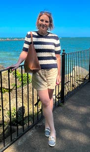 Really liked this shirt. It wasn’t too heavy and I like the slightly cropped fit. I ended up not wearing it during my vacation because the weather was so warm, but it was perfect for the plane ride back really comfortable for a long flight and would definitely rent it again in a transitional season!