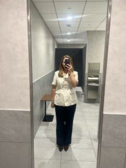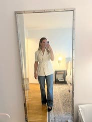 This top made me late to work. I had a hard time styling it bc it was too big on me. I left to work not feeling great about my fit. The day went on and I found myself loving it so idk. I wore it 2x just to get another use out of it. I think I liked it