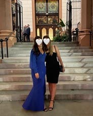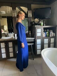 This dress was everything! The blue is a royal blue and eye catching. The fit was spot on and the slit is high. I am not too busty on top so I had to pin it under my arm, but you couldn’t tell. I received a lot of compliments!